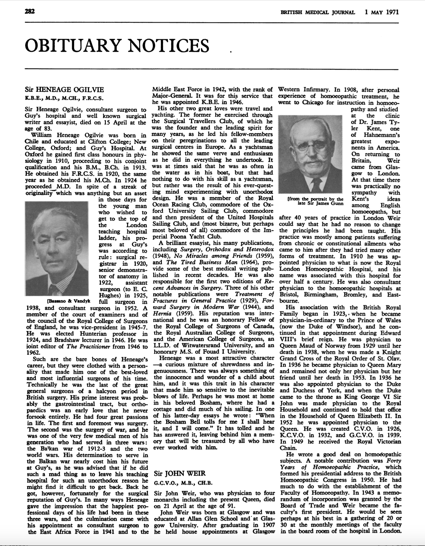 Sir Heneage Ogilvie’s obituary in the BMJ of 1971